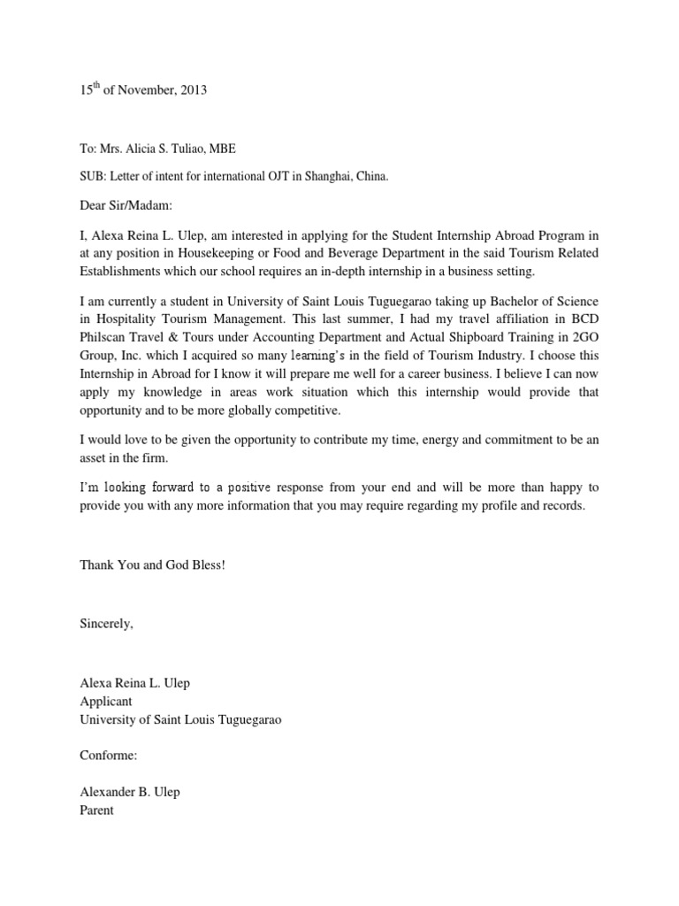 Gallery of Sample Cover Letter For Ojt Accounting Students